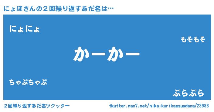 | 男性向けラノベタイトル風あだ名 | 『にょほという概念が存在しない退屈な世界 』 |