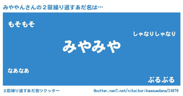 | 意味不明あだ名 | 『ペロリンみややん』『自称みややん』 |