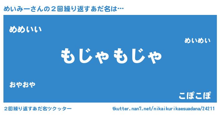| 料理風あだ名 | 『ヘルシー!めいみーのピリ辛酒蒸し!』 |