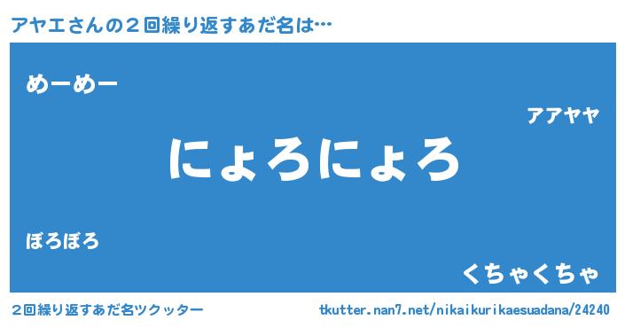 | 意味不明あだ名 | 『とにかく怪しいアヤエ』『自称アヤエ』 |
