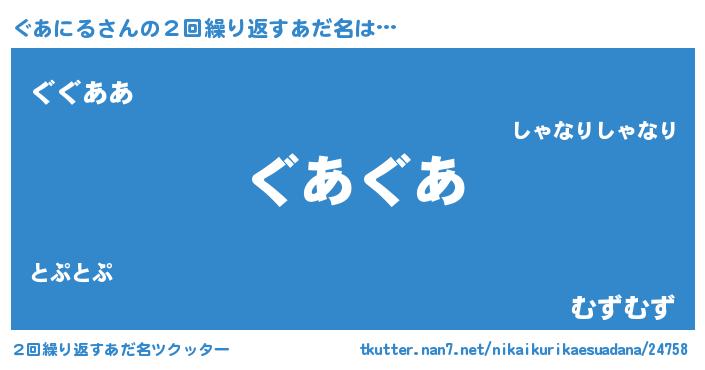 | 意味不明あだ名 | 『ペロリンぐあにる』『自称ぐあにる』 |