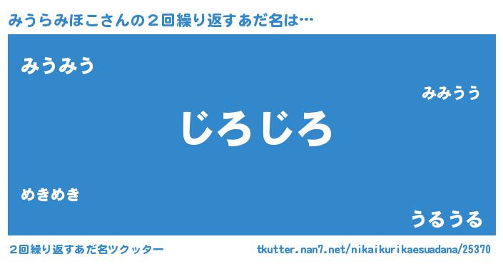 | 意味不明あだ名 | 『住所不定無職みうらみほこ(9歳)』 |
