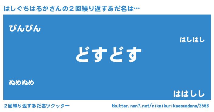 | 男性向けラノベタイトル風あだ名 | 『うちのはしぐちはるかが世界を掌握している!』 |
