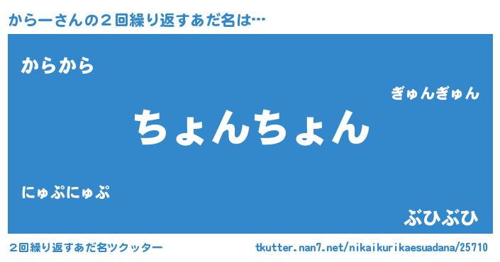 | 意味不明あだ名 | 『ペロリンからー』『永久保存からー』 |