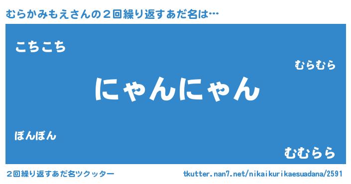 | 意味不明あだ名 | 『とにかく怪しいむらかみもえ』 |