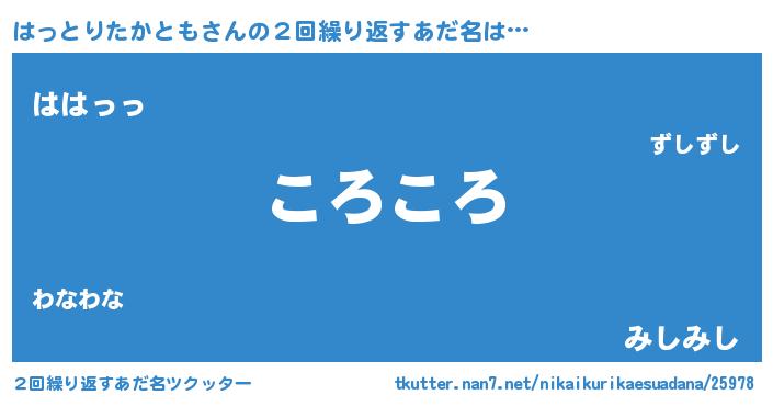 | 意味不明あだ名 | 『永久保存はっとりたかとも』 |