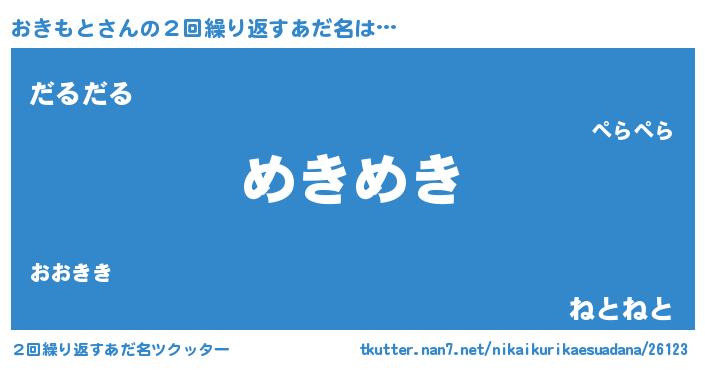 | 意味不明あだ名 | 『自称おきもと』『おきもとフォーエバー』 |