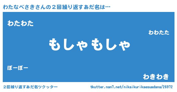 | 男性向けラノベタイトル風あだ名 | 『Re:わたなべさきから始める異世界生活』 |