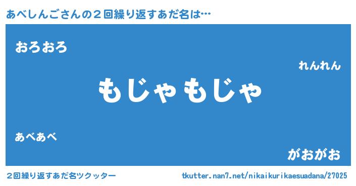 | 男性向けラノベタイトル風あだ名 | 『あべしんごに滅ぼされるだけの簡単なお仕事です』 |