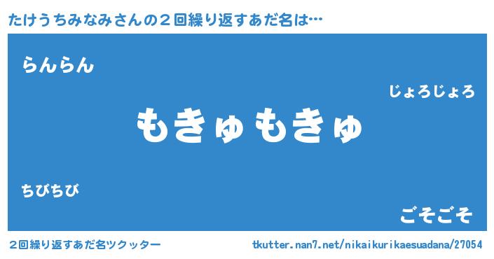 | ヘコむあだ名 | 『たけうちみなみ(笑)』『たけにゅー』 |