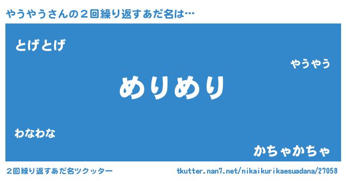 | 男性向けラノベタイトル風あだ名 | 『Re:やうやうから始める異世界生活』 |