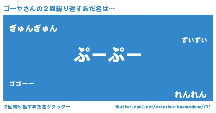 | 料理風あだ名 | 『ゴーヤのトマト煮』『ゴーヤごはん』 |