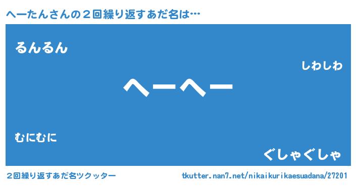 | 意味不明あだ名 | 『ペロリンへーたん』『永久保存へーたん』 |