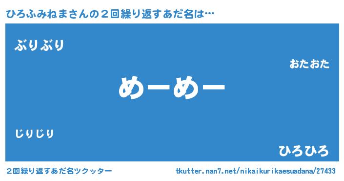 | 意味不明あだ名 | 『自称ひろふみねま』 |