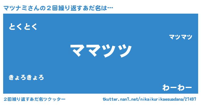 | 意味不明あだ名 | 『マツナミフォーエバー』 |