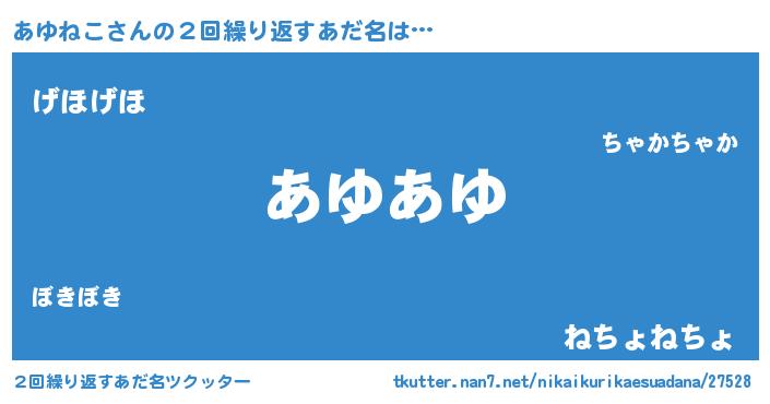 | 意味不明あだ名 | 『ペロリンあゆねこ』『永久保存あゆねこ』 |