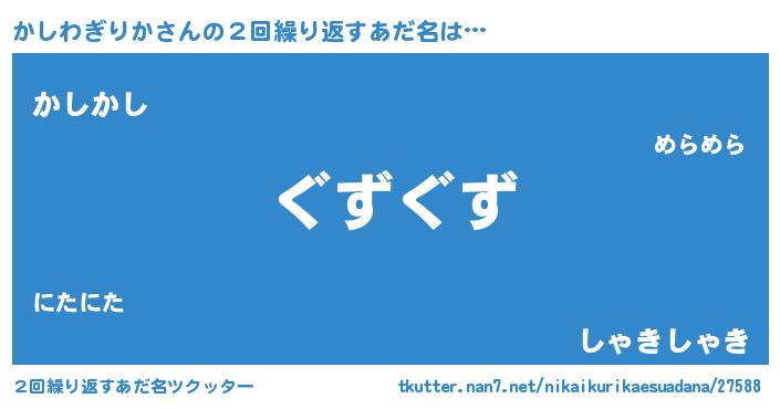 | 胡散臭い通販商品みたいなあだ名 | 『来世でも幸せになれる水素水…その名も「かしわぎりか」』 |