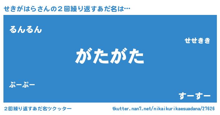 | ヘコむあだ名 | 『せきがはら(爆)』『牛乳』『せきお』 |