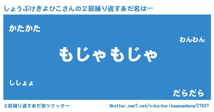 | 意味不明あだ名 | 『自称しょうぶけきよひこ』 |