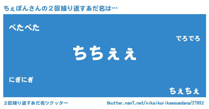 | 肩書あだ名 | 『ちぇぼん国家主席』『ちぇぼん助手』 |