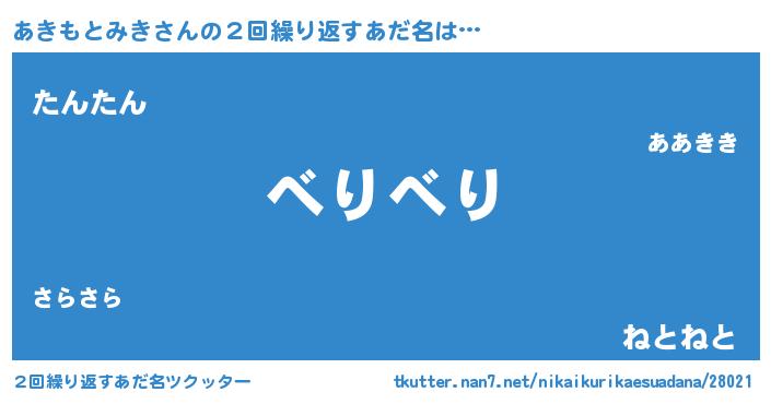 | 男性向けラノベタイトル風あだ名 | 『ノーゲーム・ノーアキモトミキ』 |