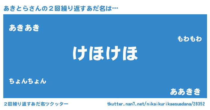 | ヘコむあだ名 | 『あきとら(小並感)』『あきっふぃ~』 |