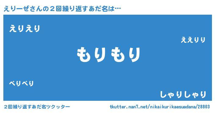 | 男性向けラノベタイトル風あだ名 | 『Re:えりーぜから始める異世界生活』 |