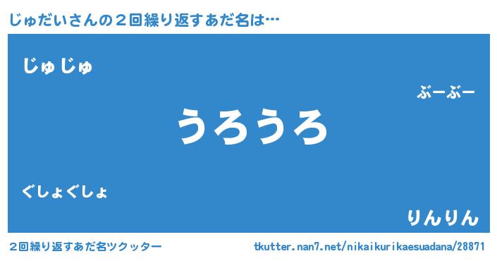 | 男性向けラノベタイトル風あだ名 | 『ダンジョンにじゅだいを求めるのは間違っているだろうか』 |