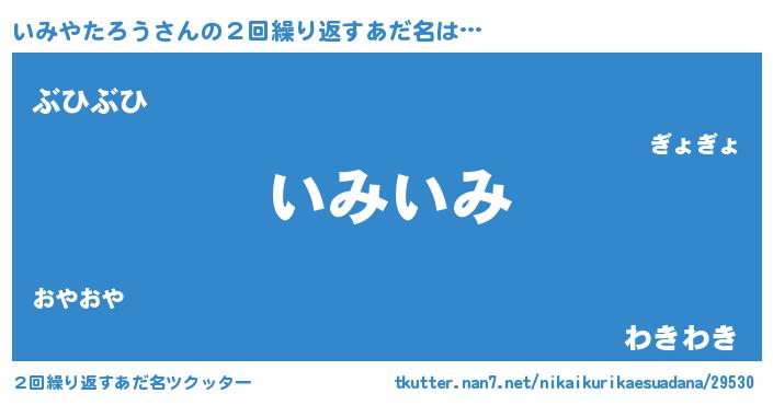 | ツイッター | いみやたろうさんのツイッターID『masyumaro_kun』 |