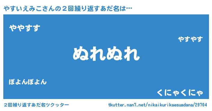 | ポケモン風あだ名 | 『ヒヤスイエミコ』『ヤスイダネ』 |