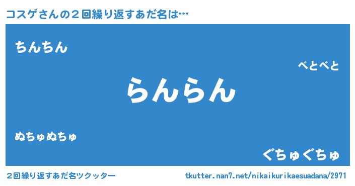 | ヘコむあだ名 | 『コスゲ(苦笑)』『コスぷりん』 |