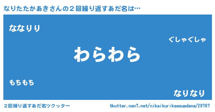 | 欧米人風あだ名 | 『トリンドルなりたたかあき』 |