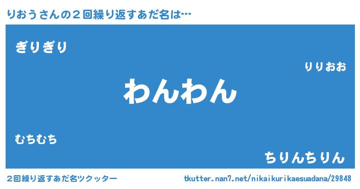 | 意味不明あだ名 | 『ヨモギ科りおう属』『永久保存りおう』 |