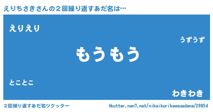 | 男性向けラノベタイトル風あだ名 | 『Re:えりちさきから始める異世界生活』 |