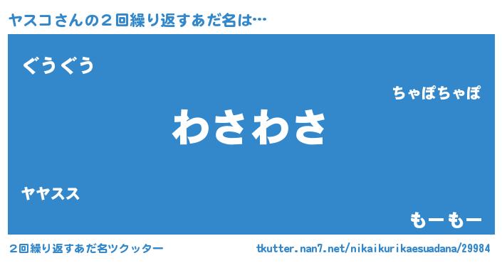 | 意味不明あだ名 | 『もやし科ヤスコ属』『永久保存ヤスコ』 |