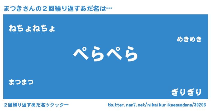 | 意味不明あだ名 | 『眠気覚ましガムまつき味』『自称まつき』 |