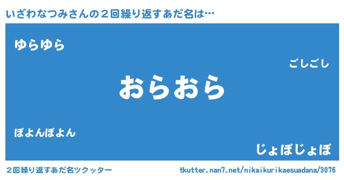 | ヘコむあだ名 | 『いざっぺ』『いざわなつみ(苦笑)』 |