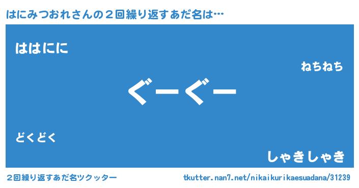 | 意味不明あだ名 | 『永久保存はにみつおれ』 |