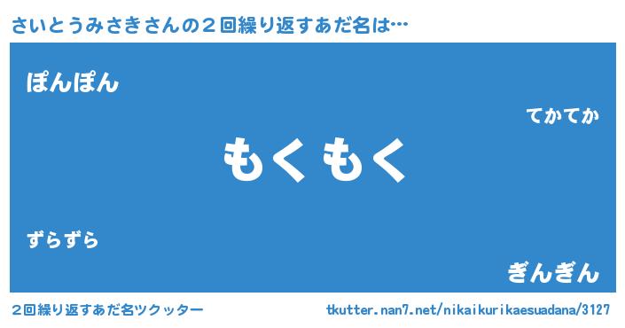 | 男性向けラノベタイトル風あだ名 | 『Re:さいとうみさきから始める異世界生活』 |