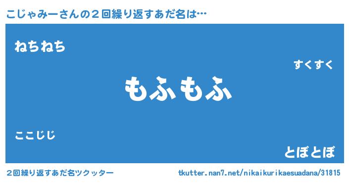| 男性向けラノベタイトル風あだ名 | 『Re:こじゃみーから始める異世界生活』 |