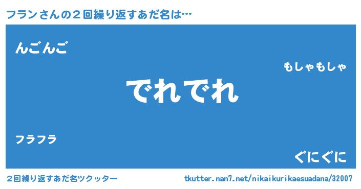 | 意味不明あだ名 | 『もやし科フラン属』『永久保存フラン』 |