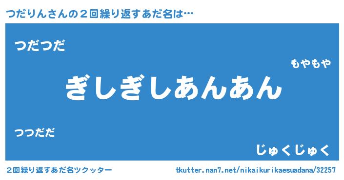 | 男性向けラノベタイトル風あだ名 | 『つだりんという概念が存在しない退屈な世界 』 |
