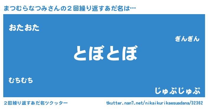 | ヘコむあだ名 | 『まつっ子』『まつむらなつみ(笑)』 |