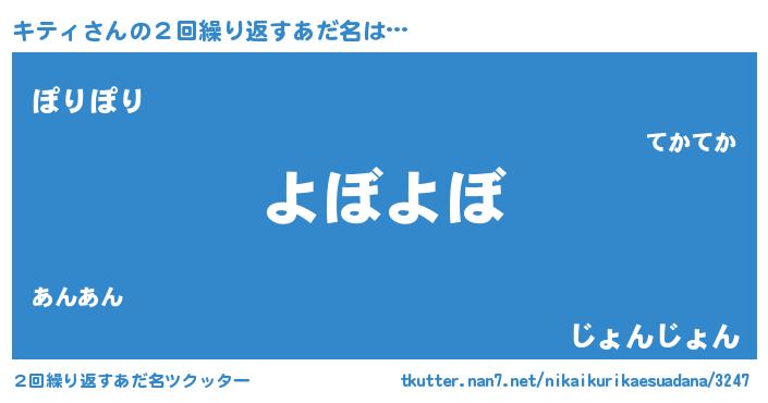 | ヒーロー風カッコイイあだ名 | 『正義の使者キティ』『仮面キテダー』 |