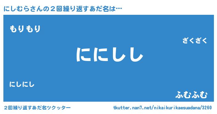 | 男性向けラノベタイトル風あだ名 | 『やはりにしむらの青春ラブコメはまちがっている 』 |
