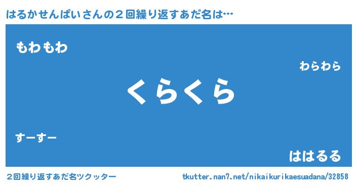 | 意味不明あだ名 | 『永久保存はるかせんぱい』 |