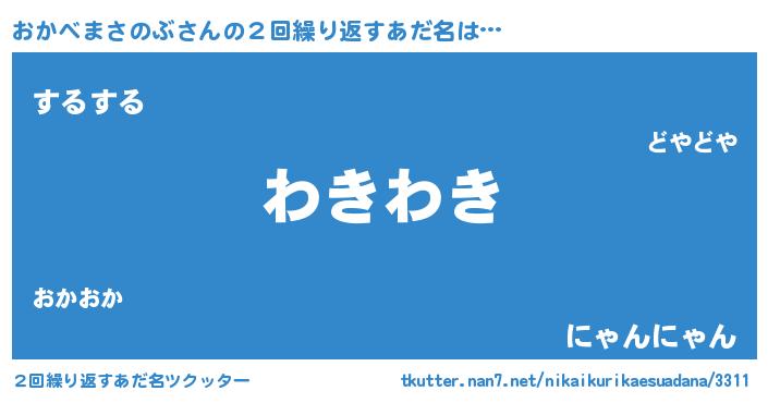 | 男性向けラノベタイトル風あだ名 | 『転生したらおかべまさのぶだった件』 |