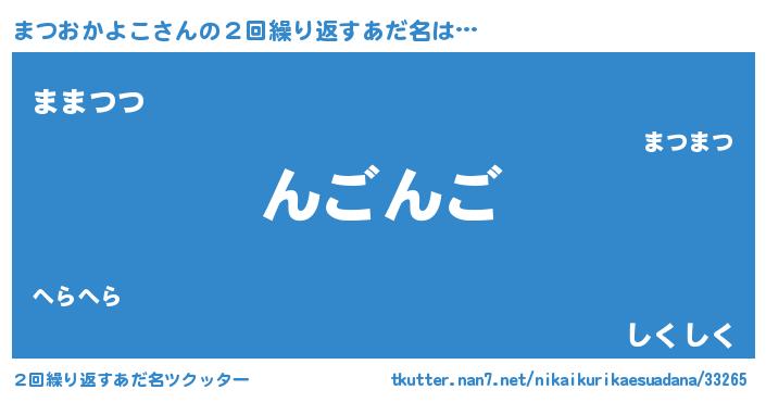 | 意味不明あだ名 | 『ヨモギ科まつおかよこ属』 |