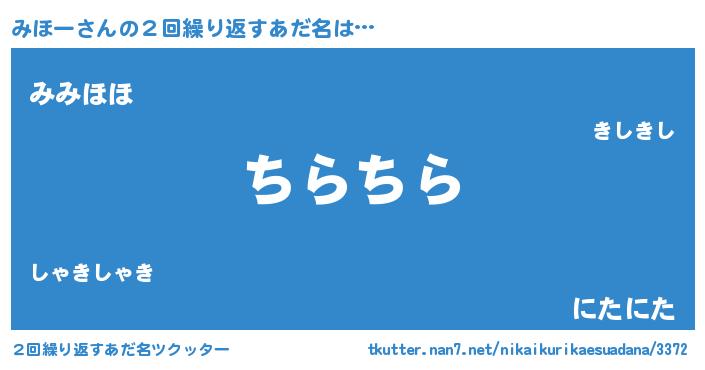 | 欧米人風あだ名 | 『みほー・ステッグマイヤー』 |