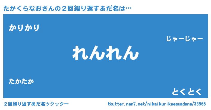 | 男性向けラノベタイトル風あだ名 | 『転生したらたかくらなおだった件』 |